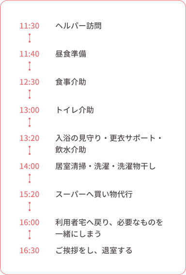 また、食事中のお話相手や、ご家族のための食事のご用意も承ります。